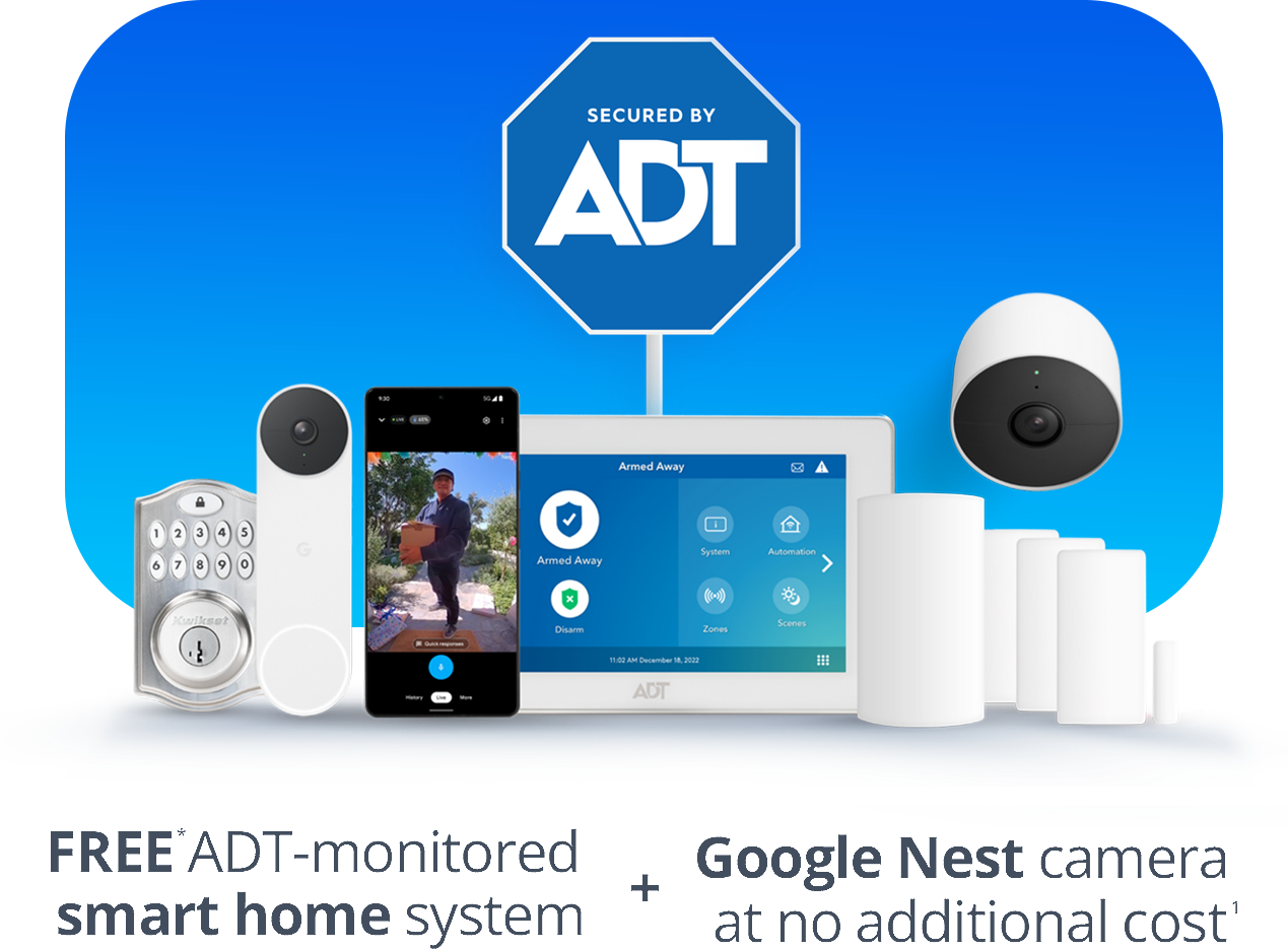 *With $99.00 customer installation charge & purchase of alarm monitoring services. customer will receive $100 Visa card 30 days after installation. Early termination fees apply. 1 Limit one camera per household (Google Nest Doorbell or Outdoor Nest Cam). See important terms & conditions below.